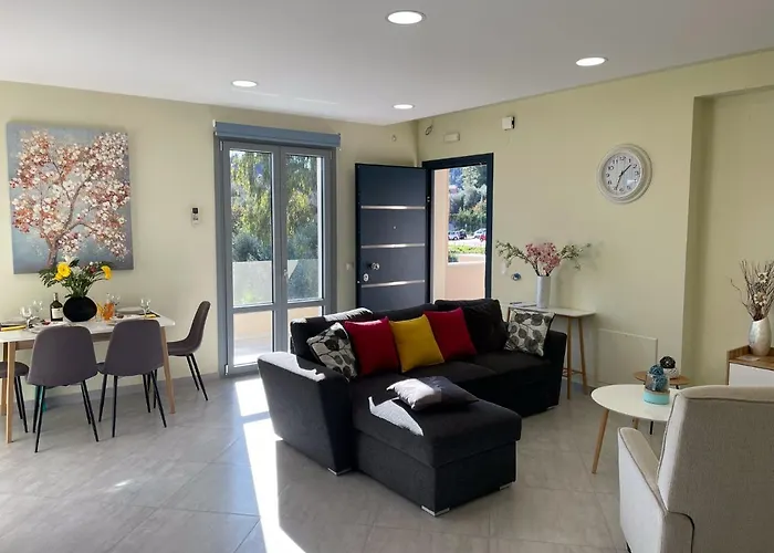 Kommeno Bay Beach placeret 2,6 km fra lejlighed, mens Loco ligger 1,4 km væk. Byens centrum ligger 1 km væk derfra. Inden for 150 meter væk, tilbyder O Pitsiakos Taverna og Gerekos Fish Taverna en række retter. Denne ferielejlighed tilbyder direkte adgang til General Hospital of Corfu.